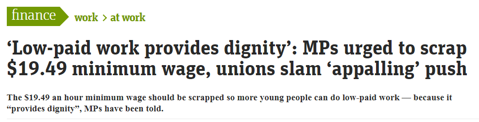近日,一份分发给国会议员的文件提议:取消澳洲的最低工资。
