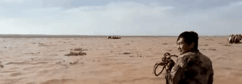 一辈子都没见过洪水的骆驼,站在原地动都不敢动,都给吓傻了。。。