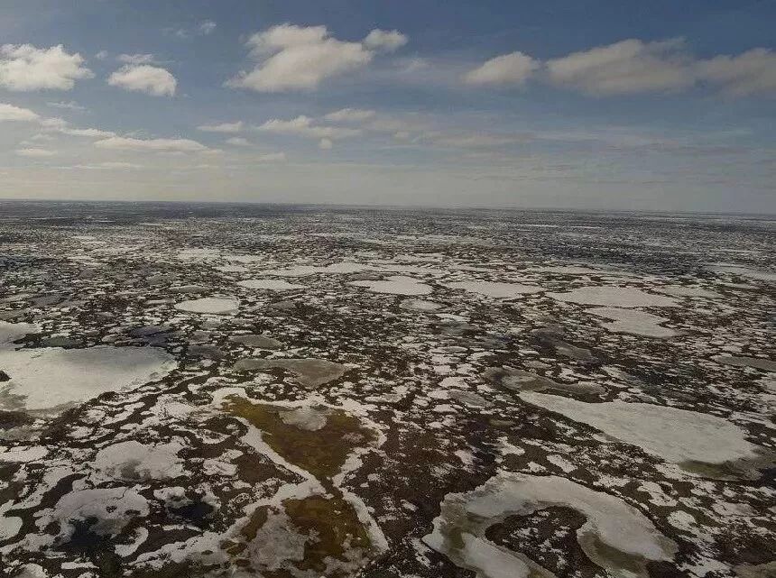 随着全球变暖,气温升高,北极的冰层和冻土层逐渐融化。