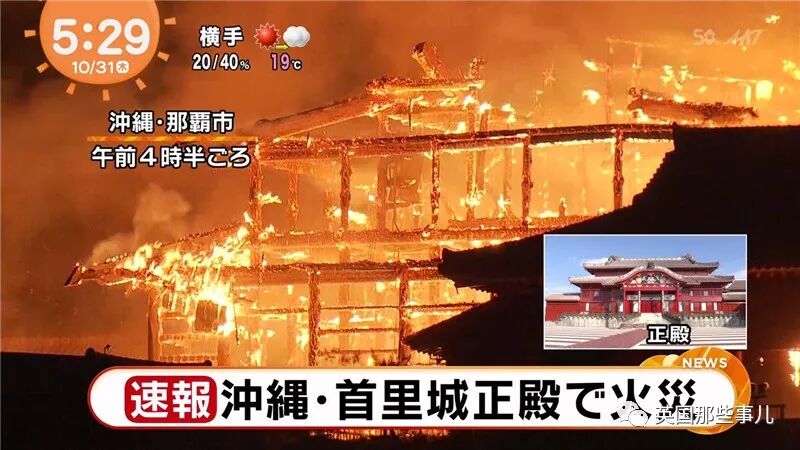不少民众在看到熊熊燃烧的大火后,呆立在首里城前,