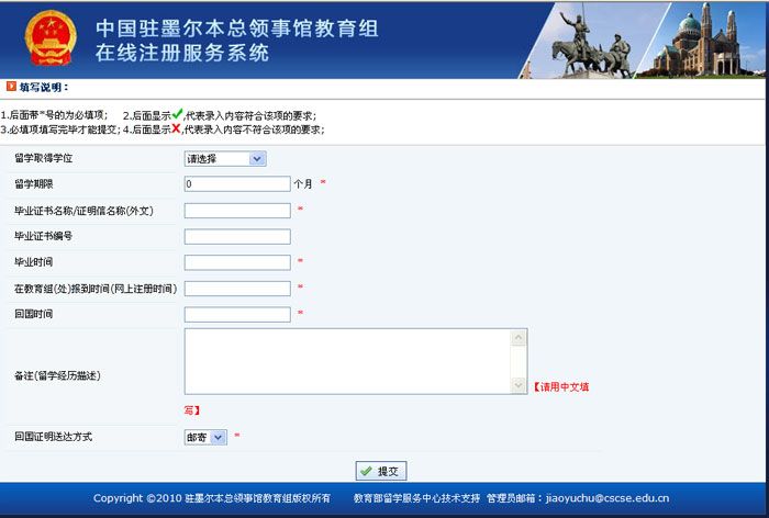 回国证明信息填写说明: