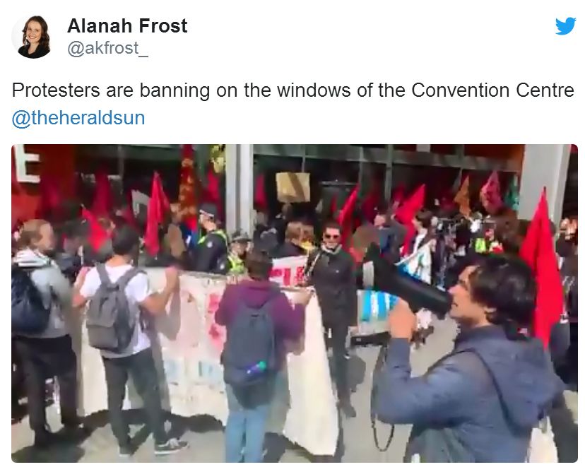 聚到了墨尔本会展中心的门口。