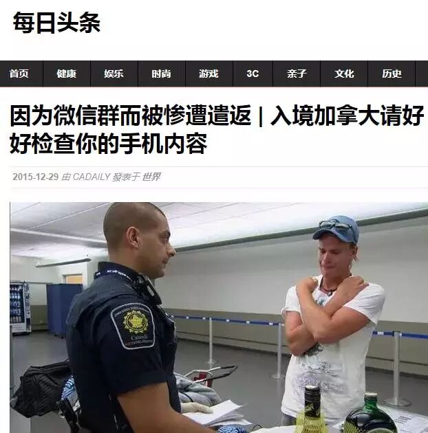 2015年12月,一名留学生在入境加拿大时被海关检查手机,
