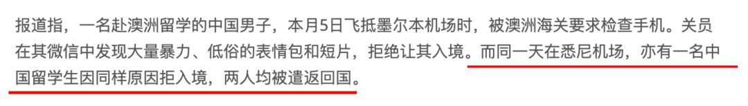 同一天在悉尼机场,也有一名中国留学生因同样原因,