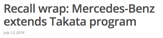 查看高田安全气囊召回全名单,请访问:https://www.productsafety.gov.au/recalls/compulsory-takata-airbag-recall/takata-airbag-recalls-list (最后更新时间2019年7月10日)