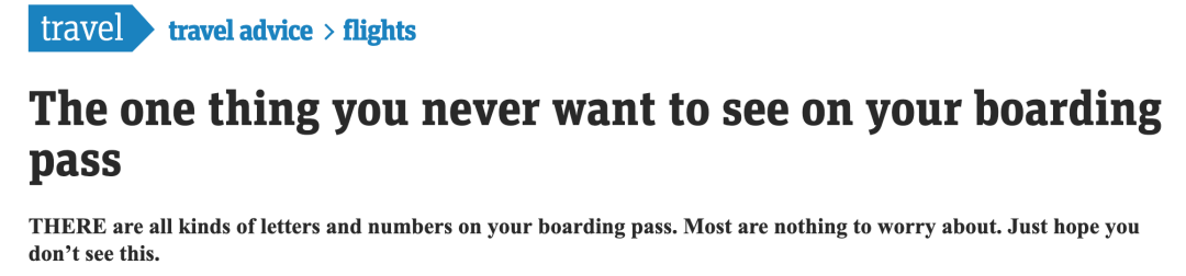 航空公司登机牌上的神秘代码,通常会给旅客带来坏消息。