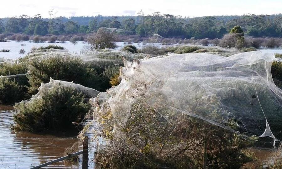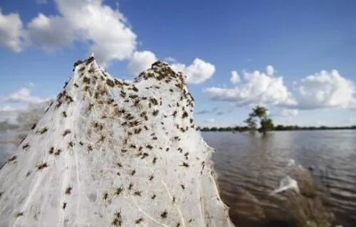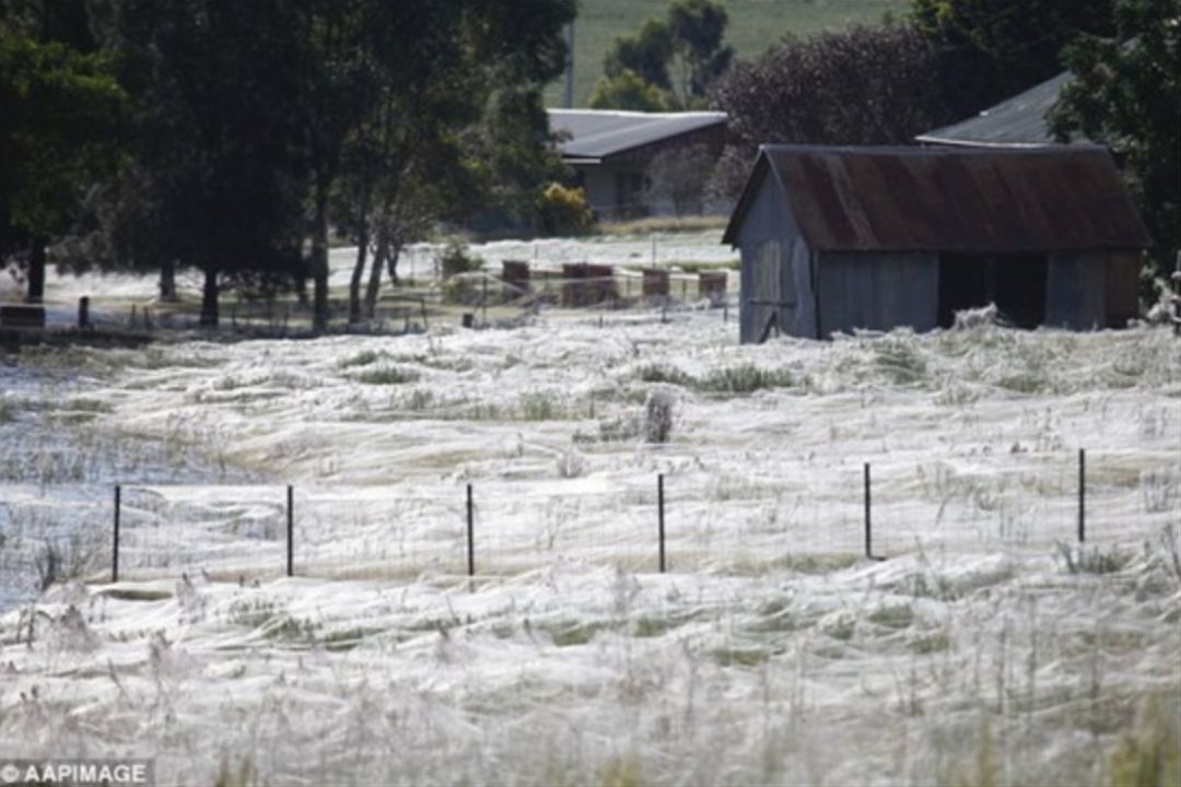 在新州的一个小镇上,漫天遍野的蜘蛛拖着长长的蜘蛛丝,开始“播种”。
