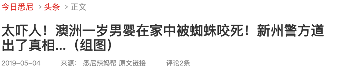 3个月前,新州一名14个月大的男婴就因为在家中被蜘蛛咬伤,