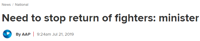 据报道,加入了IS或其它恐怖武装组织并在叙利亚和伊拉克作战的40名澳洲人已回到了澳洲,联邦政府认为其中一些人构成重大安全威胁。自2012年以来,共有230名澳洲人前往战区。