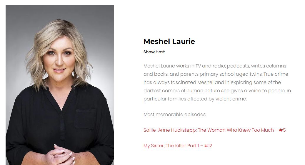 Meshel Laurie是《澳大利亚真实犯罪播客》(Australian True Crime Podcast)的主持人。