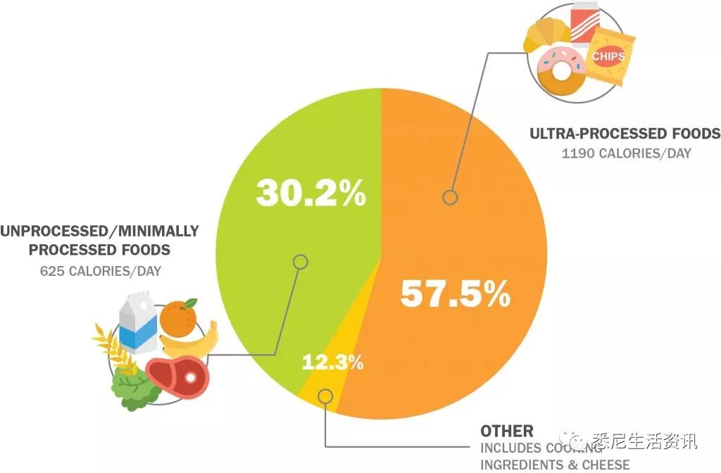 超加工食品不知不觉中已经占领了人类的食谱。全球来算,人类每天57.5%的能量来自于超加工食品。澳大利亚还好些,只有35%。