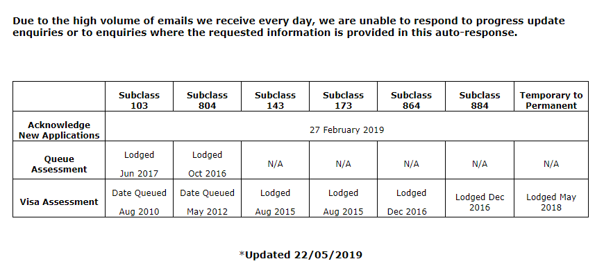 父母移民的等待时间,就不用再多说了,下图是2019年5月22号更新的各类父母移民审理的进度。