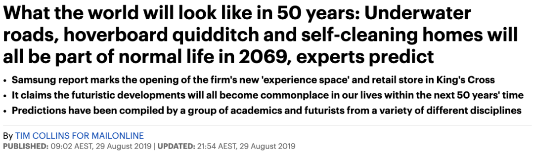 最近,一项关于未来技术的预测报告提到,水下高速公路,悬浮汽车还有太空假期都将成为50年后司空见惯的景象!