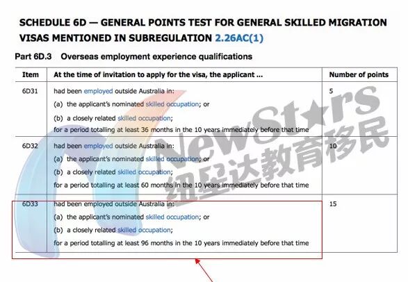 上图取自Migration Regulation Schedule 6D33,该部分确定海外工作经历打分的计算标准。