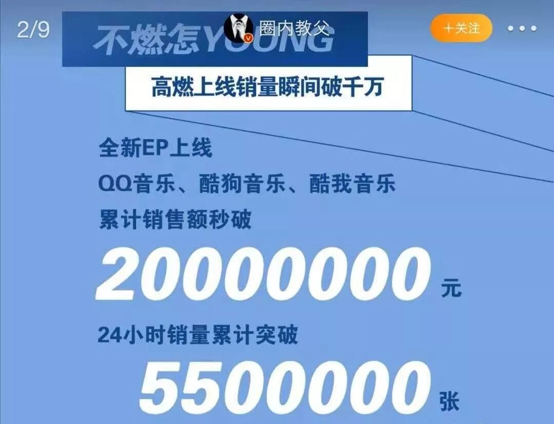 在这场刷网大战结束没多久,鸡你太美发新歌。在每个铁粉人均购买200份的基础上,一首单曲卖了2000多万。这是不是有点情景再现的意思?