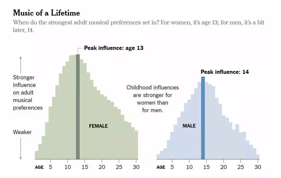 哈佛大学经济学博士谷歌前数据科学家畅销书《Everybody Lies》作者 Seth Stephens-Davidowitz 做过这么一个研究。一个人一辈子最喜欢的音乐在十三四岁左右时候就已经定型了。在每个人的记忆中,最经典的回忆永远是在那个时间点。周杰伦的歌,恰好基本覆盖了85到95后的14岁时间点。